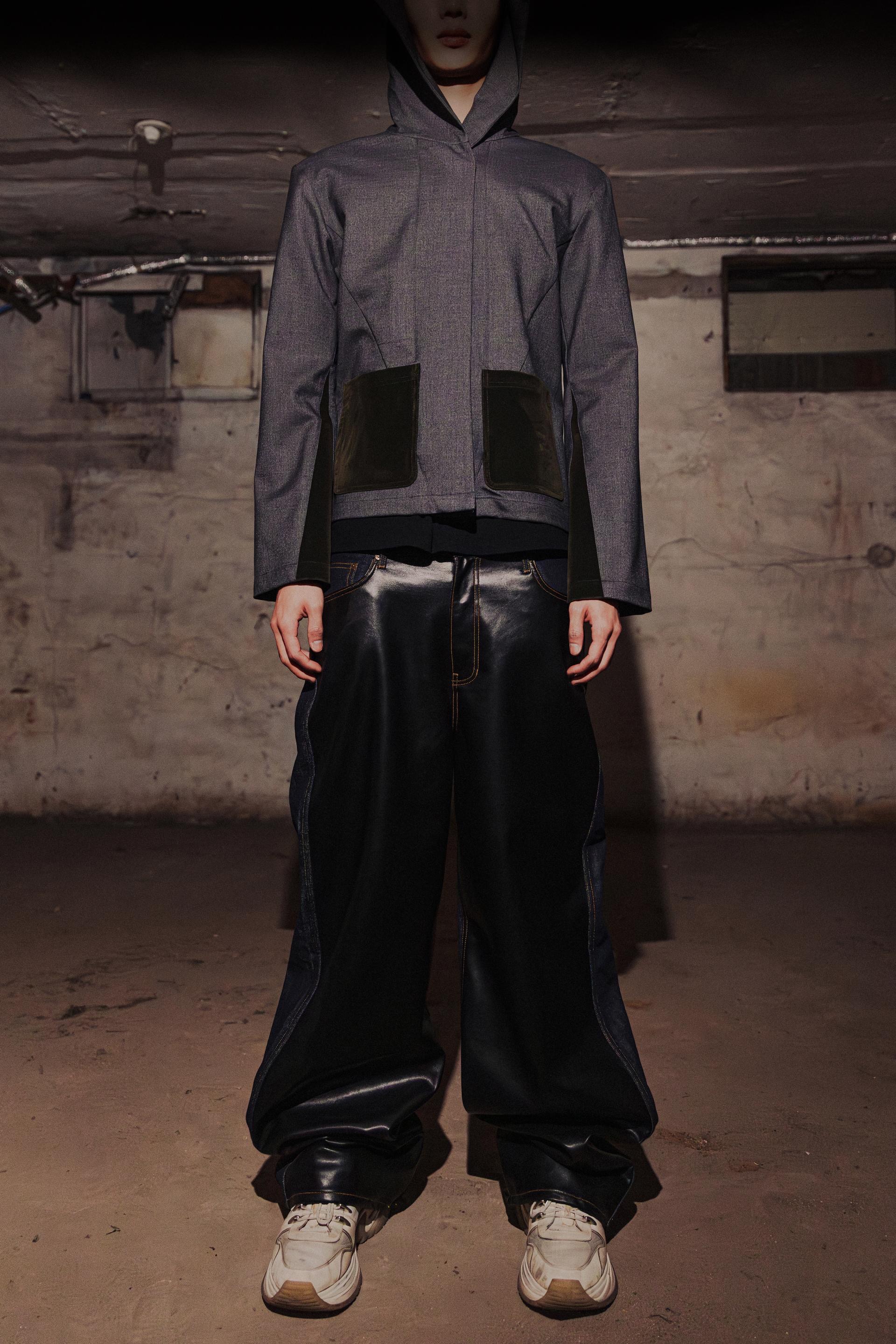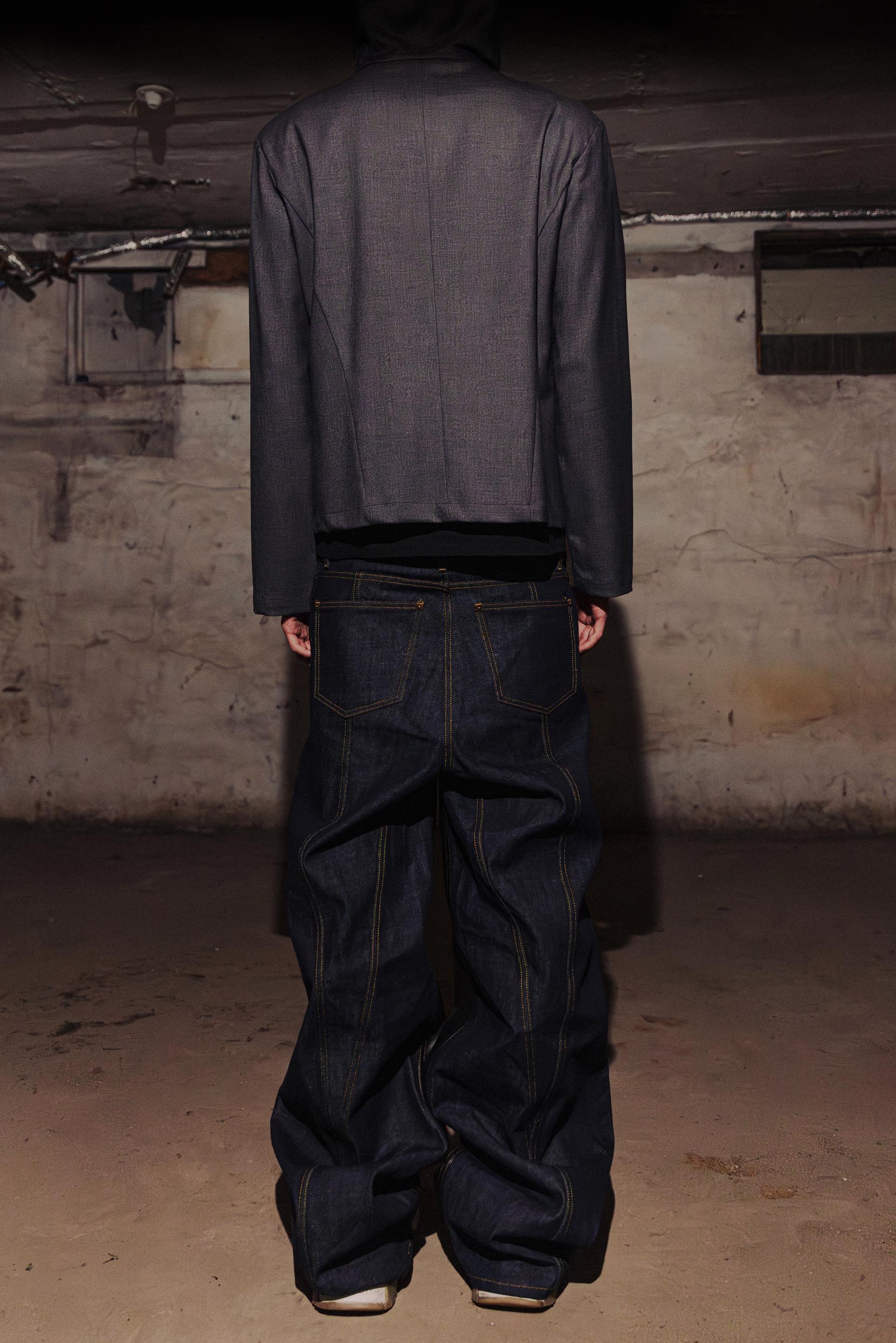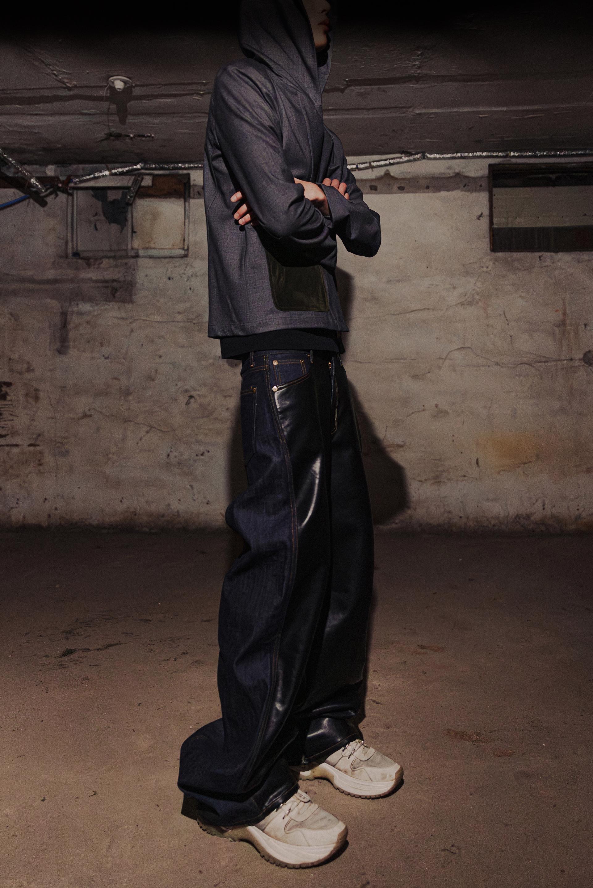 LEATHER PANEL HALF & HALF INDIGO DENIM