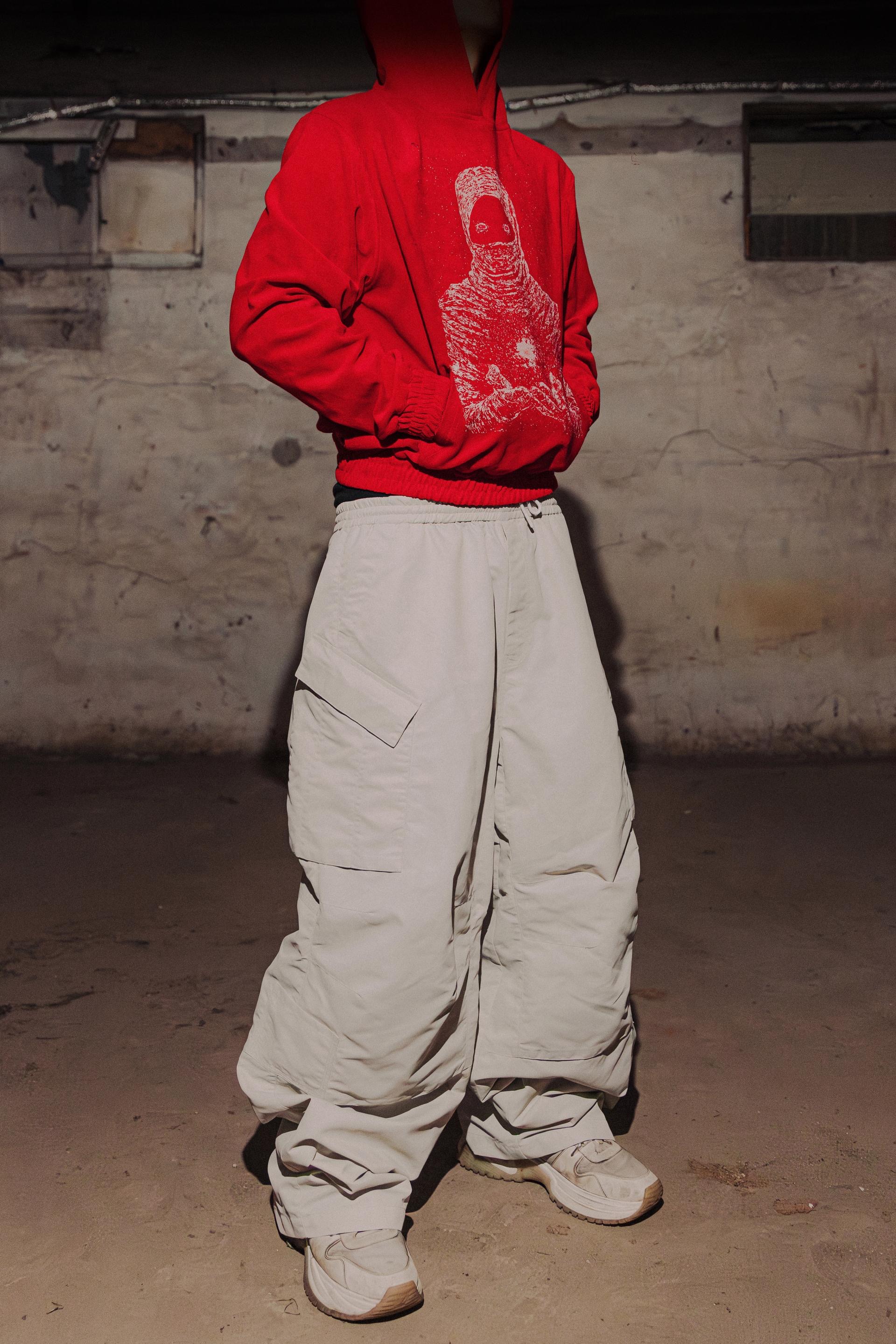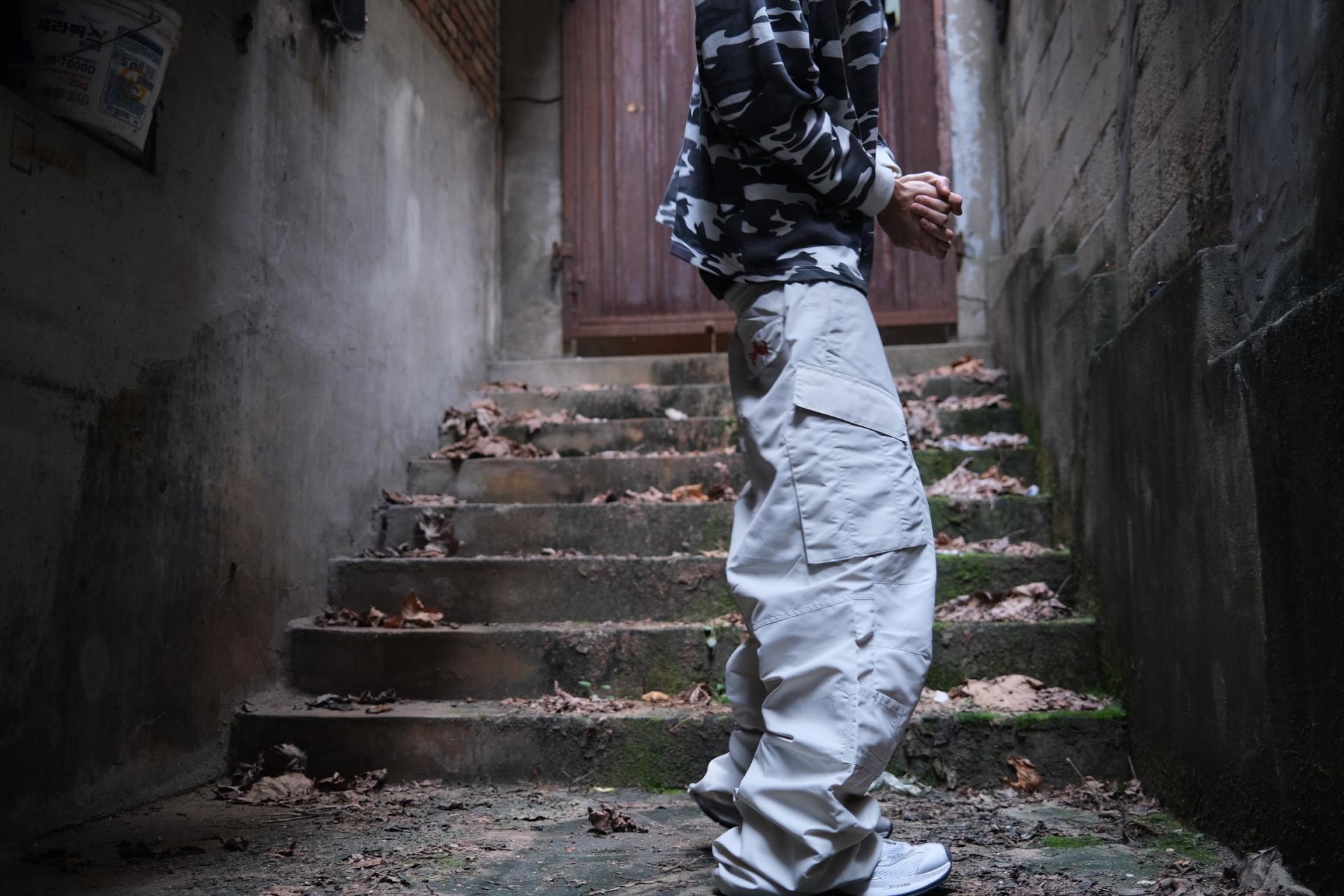 WIDE BAGGY NYLON POCKET CARGO PANTS - IVORY